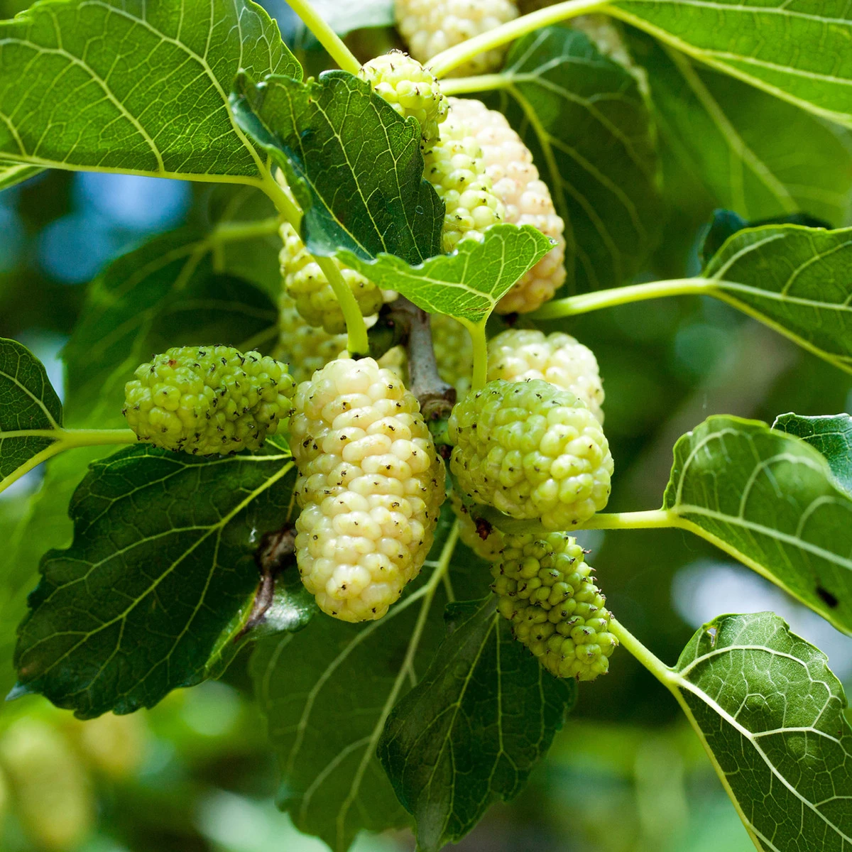 A Amora Branca é uma frutífera de porte médio, originária da Ásia, muito cultivada por sua produção abundante de frutos doces e nutritivos. Suas amoras, de coloração esbranquiçada a levemente amarelada, têm sabor suave e adocicado, sendo ideais para consumo direto ou para o preparo de doces e geleias. A planta é também muito utilizada na alimentação do bicho-da-seda, o que reforça sua importância econômica e ecológica.