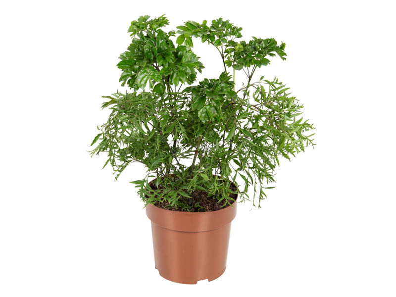 As folhas da Fêmea são são pequenas e delicadas, formando uma folhagem leve e elegante. A variedade Macho possui folíolos maiores e aspecto mais aberto, enquanto a Fêmea apresenta folhas mais delicadas e formato mais compacto. De fácil cultivo, adapta-se muito bem a interiores com boa luminosidade indireta e responde aos cuidados com crescimento saudável e duradouro.