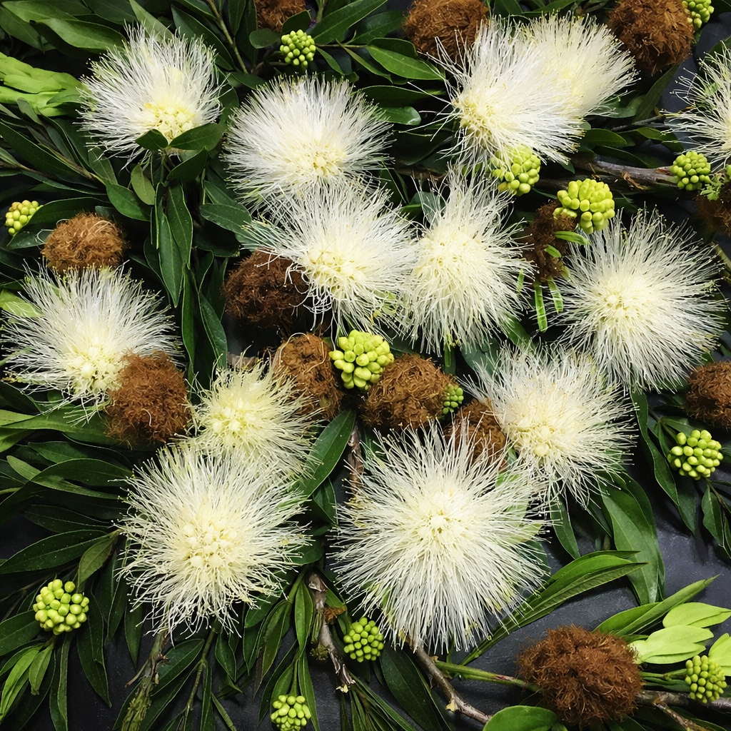 A Caliandra Branca (Calliandra haematocephala “alba”) é uma planta ornamental encantadora, conhecida por suas flores delicadas e exuberantes em formato de pompom, compostas por longos estames brancos que criam um efeito leve e sofisticado. Muito utilizada em paisagismo, ela traz um visual tropical elegante e ainda atrai polinizadores como abelhas e beija-flores, tornando o ambiente mais vivo e dinâmico.