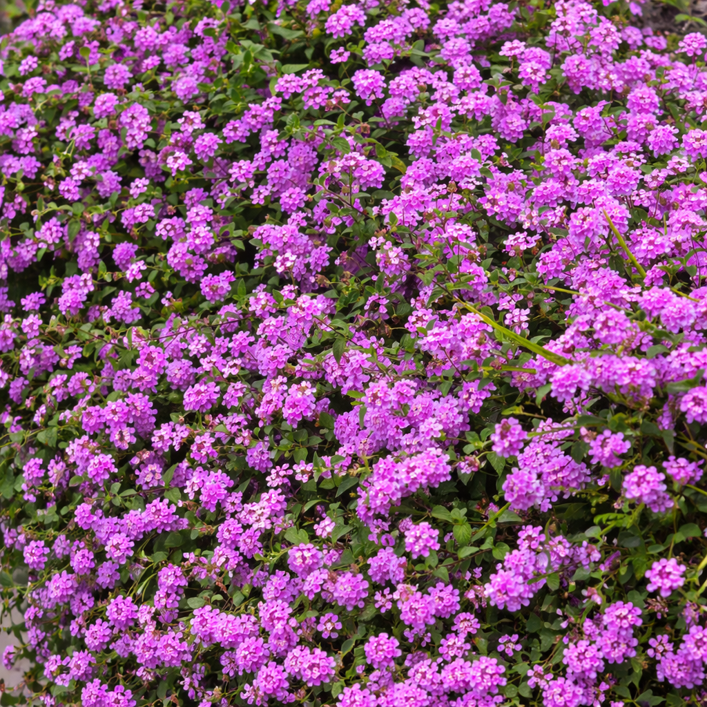 O Cambará Lilás (Lantana montevidensis) é uma planta ornamental muito apreciada por sua floração abundante e delicada, que forma verdadeiros tapetes de pequenas flores em tons de lilás e roxo ao longo de praticamente todo o ano. Com crescimento rasteiro e ramagem densa, é ideal para quem busca beleza com baixa manutenção, sendo bastante resistente ao calor, à seca e às condições adversas. Seu visual leve e colorido atrai borboletas e outros polinizadores, trazendo ainda mais vida ao jardim.