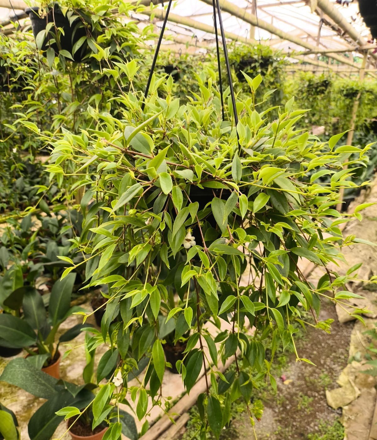 A Columéia Bambu é uma planta ornamental pendente de grande valor decorativo, muito apreciada pelo visual exótico de seus ramos alongados e articulados, que lembram pequenos colmos de bambu. Ideal para cultivo em cuias e vasos suspensos, destaca-se também por sua floração vibrante, que cria um belo contraste com a folhagem verde intensa. É uma excelente escolha para ambientes internos bem iluminados, varandas e áreas protegidas.