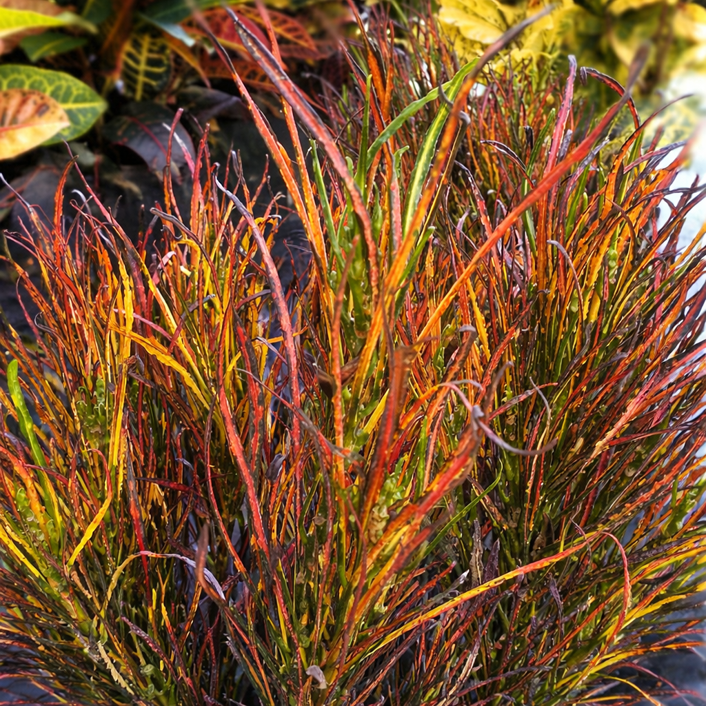 O Cróton Picasso (Codiaeum variegatum 'Picasso's Paintbrush') é uma variedade exótica e altamente ornamental, é conhecido por suas folhas finas e alongadas que lembram pinceladas artísticas. Com cores vibrantes que variam entre verde, amarelo, laranja e vermelho, essa planta se destaca como um verdadeiro elemento decorativo vivo. Seu visual diferenciado traz personalidade e modernidade para qualquer ambiente, sendo ideal para quem busca um toque tropical e criativo na composição.