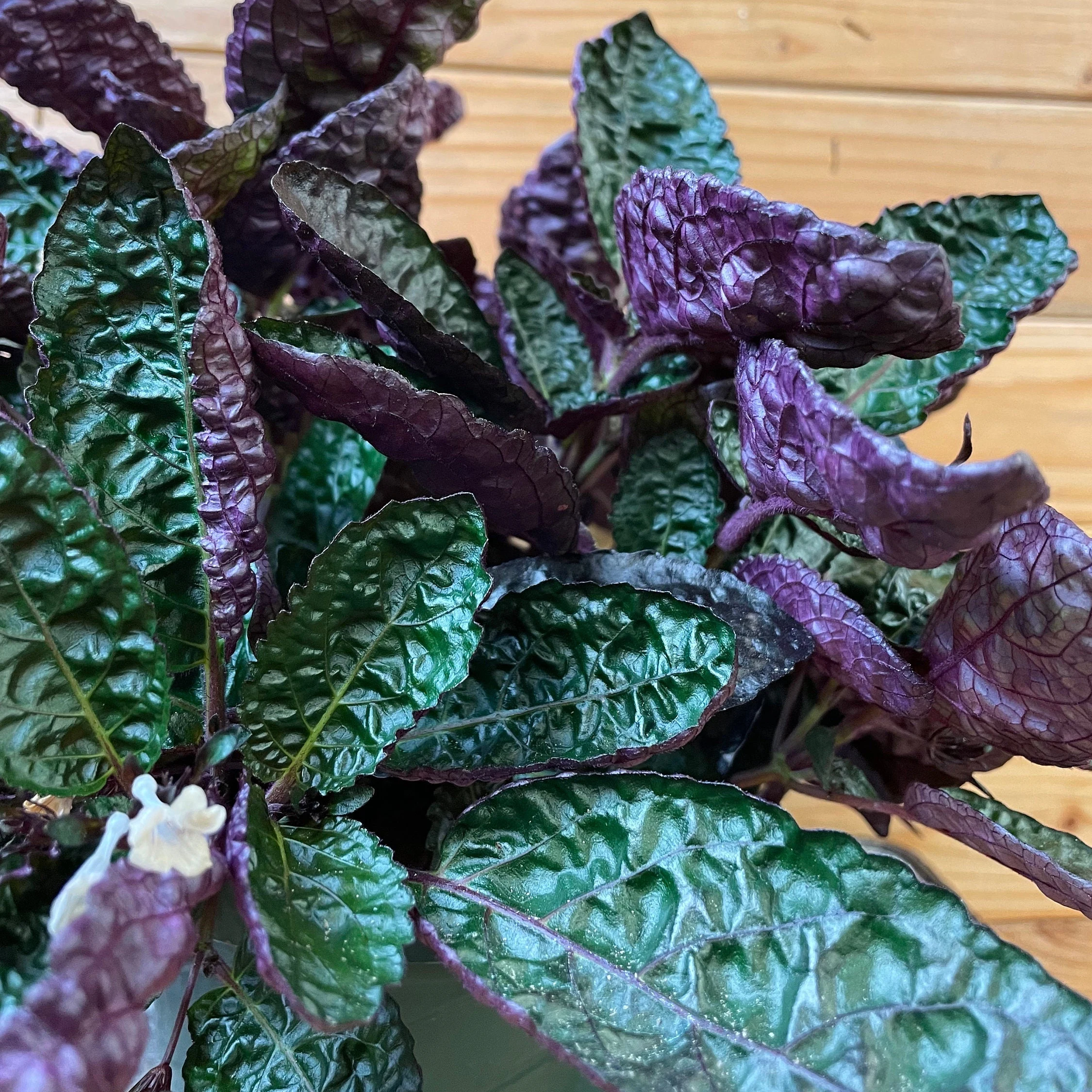 A Hemigrafis Crespa (também chamada de Hemigrafis Exótica, Hera Crespa), Hemigraphis alternata ‘Exotica’, é uma herbácea ornamental de folhagem altamente texturizada, marcada por folhas onduladas em tons metálicos de púrpura, vinho e verde-escuro. Sua aparência enrugada cria um efeito sofisticado e muito chamativo, especialmente em ambientes de meia-sombra. Forma touceiras densas, de fácil manejo, sendo uma ótima opção para quem busca cor e textura em espaços internos ou protegidos.
