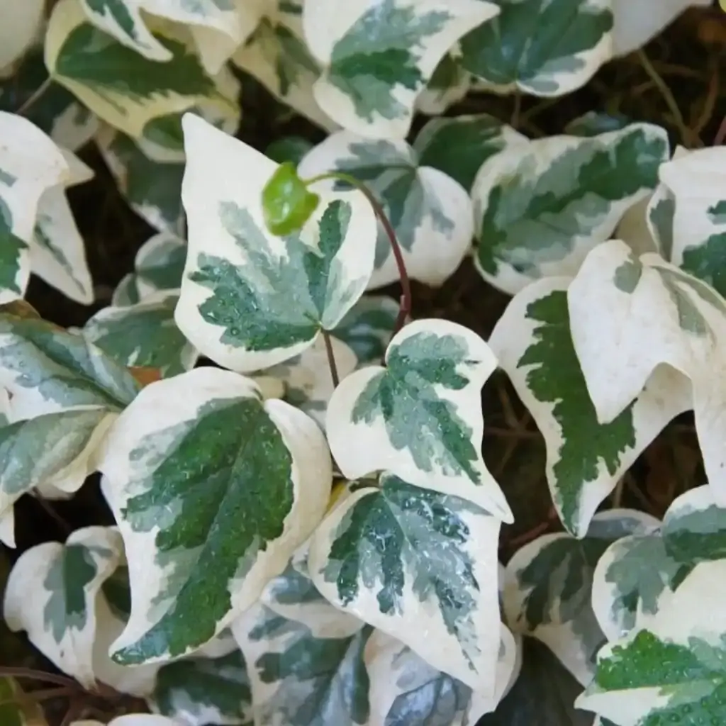 A Hera ou Hedera Variegata é uma trepadeira perene de crescimento vigoroso, muito apreciada por sua folhagem ornamental. Suas folhas grandes e brilhantes apresentam bordas creme ou esbranquiçadas que contrastam com o verde intenso do centro, criando um efeito decorativo elegante. Pode ser cultivada tanto como planta pendente, em vasos e jardineiras, quanto como forração ou cobertura de muros, grades e cercas, aderindo facilmente às superfícies. É resistente, de fácil cultivo e adapta-se bem a diferentes condições de luz, preferindo locais de meia-sombra.