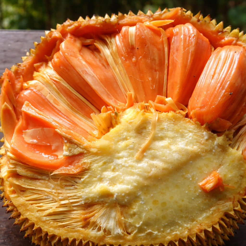 A Jaca Âmbar (Artocarpus heterophyllus “Âmbar”) é uma variedade especial de Jaqueira que se destaca pela qualidade superior de seus frutos, com polpa de coloração dourada intensa, sabor adocicado e aroma marcante. Muito apreciada tanto para consumo in natura quanto para uso culinário, essa variedade apresenta excelente produtividade e frutos com textura firme e menor teor de látex em comparação às variedades comuns.