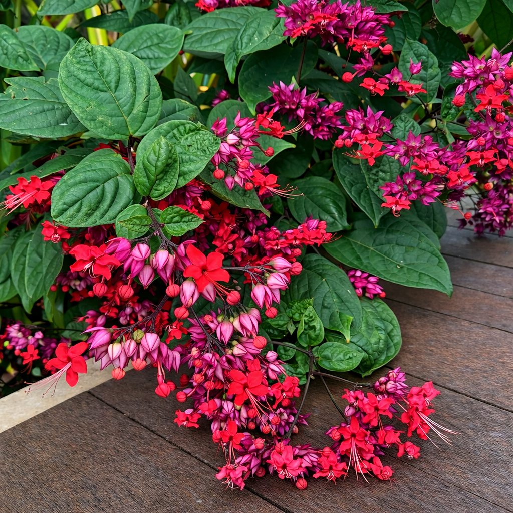 A Lágrima-de-Cristo Vermelha (Clerodendrum thomsoniae) uma trepadeira ornamental muito apreciada pela beleza exótica de suas flores. Seu grande destaque está no contraste entre o cálice branco em formato de lanterna e a flor vermelha intensa que surge no centro, criando um efeito delicado e elegante. A floração costuma ser abundante e prolongada, trazendo charme e destaque para jardins, cercas, pérgolas e caramanchões.