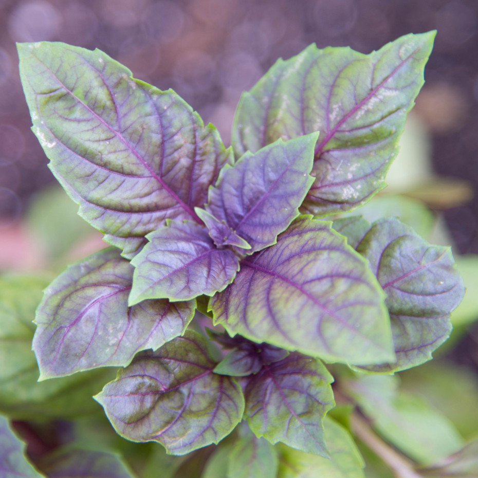 A Manjericão Roxo (Ocimum basilicum) é uma variedade aromática muito apreciada pelo sabor marcante. Suas folhas de tom arroxeado, brilhantes e levemente onduladas conferem um aspecto ornamental, enquanto o aroma intenso, adocicado e com notas de cravo a torna indispensável na culinária. É uma planta de crescimento rápido, perfeita para cultivo em vasos, hortas e canteiros bem ensolarados.