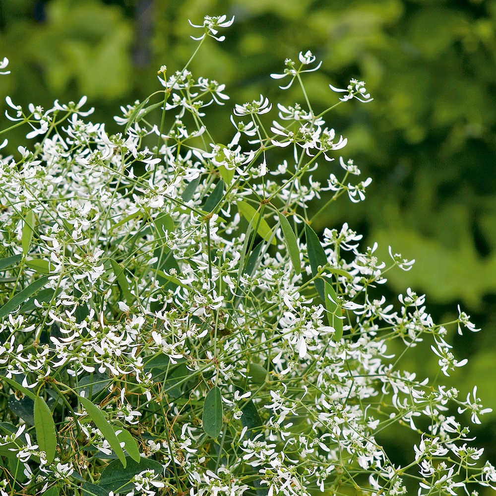 A Neve da Montanha Pendente, também conhecida como Euphorbia Hip Hop, é uma planta ornamental extremamente delicada e elegante, muito valorizada pelo efeito visual que produz. Seus inúmeros raminhos finos ficam completamente cobertos por pequenas flores brancas, formando uma verdadeira “nuvem” de flores que lembra flocos de neve.