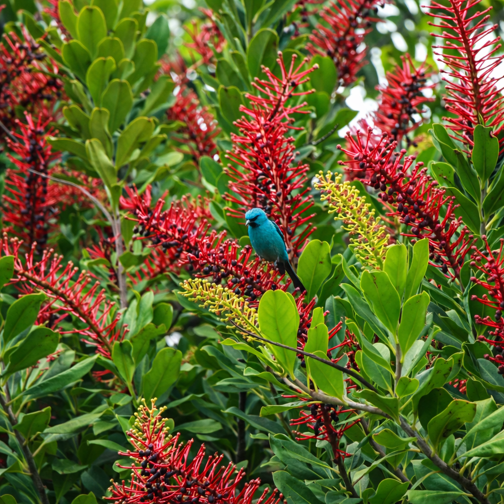 A Norantea brasiliensis é uma trepadeira nativa do Brasil que chama atenção pelo seu visual exótico e ornamental. Suas inflorescências pendentes, com flores em tons intensos de vermelho, criam um efeito ornamental único, muito valorizado em projetos paisagísticos tropicais. Além da beleza, é uma planta rústica e de crescimento vigoroso, ideal para cobrir pérgolas, cercas e estruturas, proporcionando um toque natural e sofisticado ao ambiente.