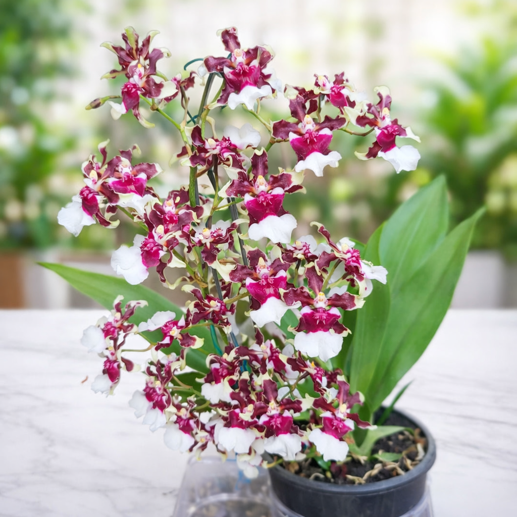 A Orquídea Chocolate Oncidium sharry baby é uma das orquídeas mais desejadas e encantadoras, famosa por suas flores delicadas e, principalmente, por seu perfume marcante que lembra chocolate e baunilha. Suas hastes florais longas e arqueadas produzem dezenas de pequenas flores em tons de vinho, marrom e branco, criando um visual sofisticado e muito ornamental. É uma excelente escolha para quem busca beleza, aroma agradável e fácil adaptação ao cultivo doméstico.