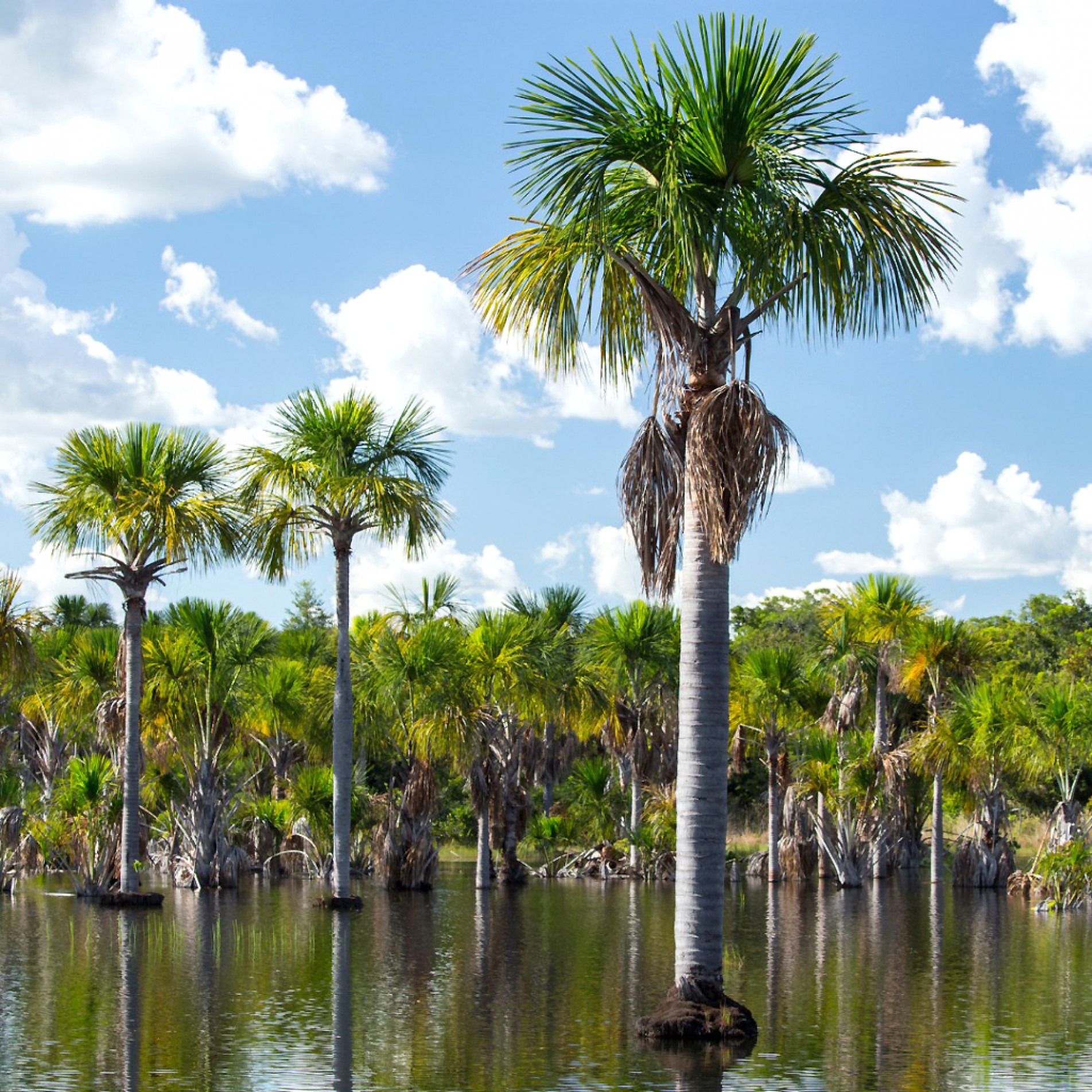 A Palmeira Buriti é uma das espécies mais emblemáticas do cerrado e da Amazônia. Também conhecida como árvore da vida, destaca-se por seu porte majestoso e sua importância ecológica, sendo uma das principais fontes de alimento e abrigo para diversas espécies da fauna. Suas folhas grandes e elegantes formam uma copa imponente, e seu tronco pode atingir até 30 metros de altura quando adulta. Além do valor ornamental, o Buriti é muito valorizado pelos frutos, ricos em óleo, vitaminas e antioxidantes, utilizados na alimentação, cosmética e medicina natural.
