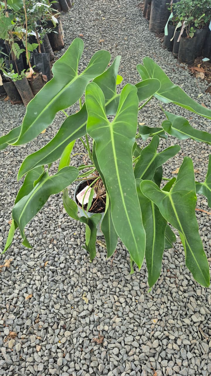 O grande destaque do Philodendron spiritus-sancti são suas folhas longas, estreitas e pendentes, que podem atingir comprimentos impressionantes. A coloração verde escura com leve brilho confere um aspecto sofisticado e raro. Com o desenvolvimento, a planta assume um visual escultural, sendo perfeita como peça central em ambientes internos bem iluminados. Trata-se de uma espécie extremamente valorizada no mercado ornamental.