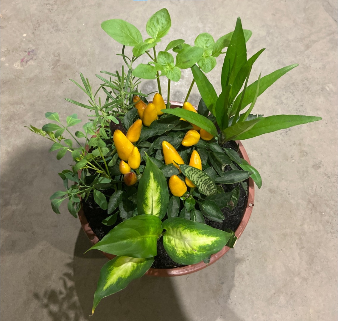 Conteúdo: 1 vaso com 7 espécies plantadas